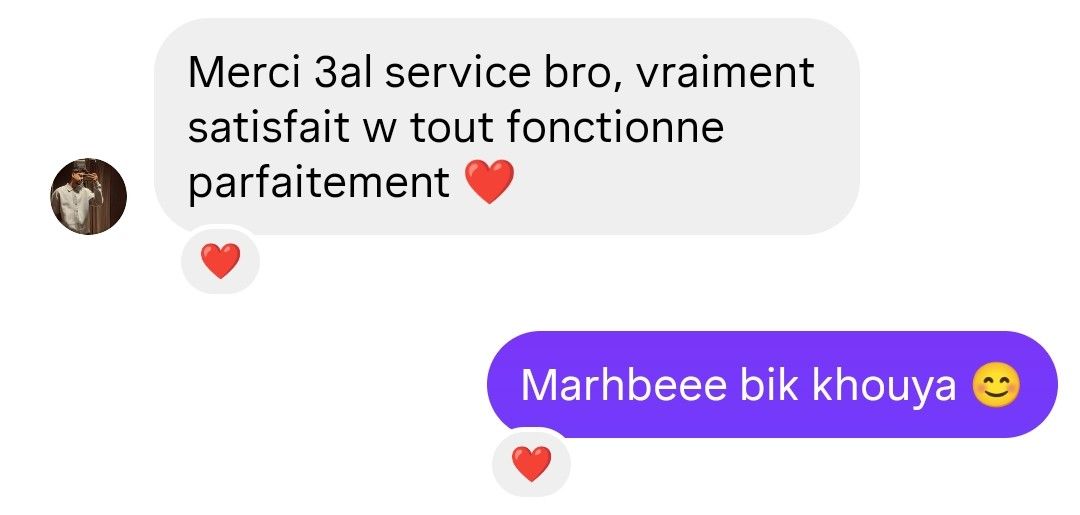 Découvrez les retours réels de nos clients sur WhatsApp, Instagram et Facebook.
